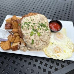Love coming here for brunch, this time I got the country fried steak with over easy eggs and it was so good. I've also gotten their breakfast tacos too which are yummy as well. Lunch and dinner is good too. Service is always good and with the time we came it was quick. Indoor and outdoor seating (dog friendly patio). Sitting outside is my favorite, when weather allows. Good beer options and for brunch there is bloody Mary's, a mimosa option and some N/A options. One of our go to spots, that's for sure!